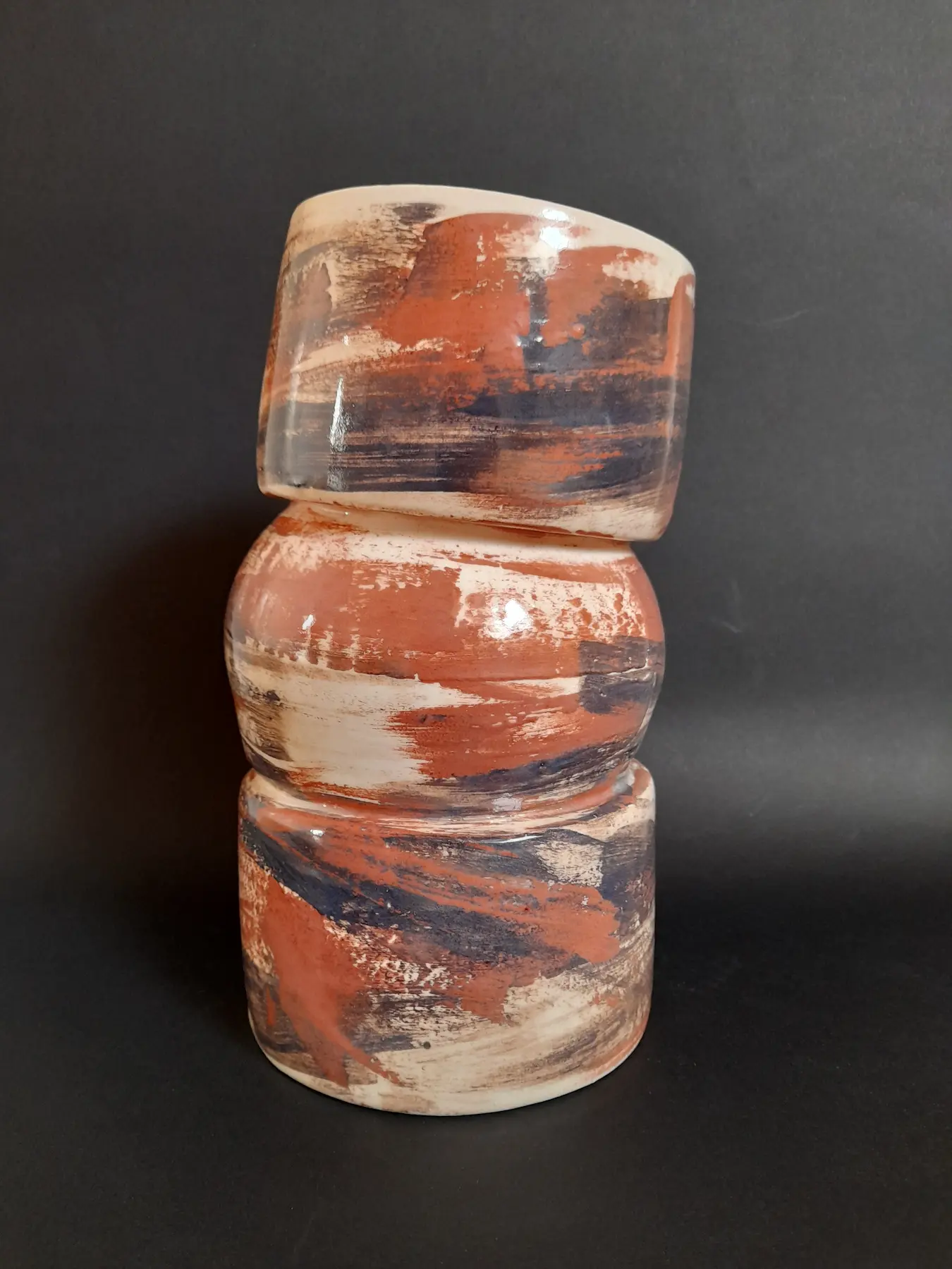 J’aime mêler les couleurs de terre, blanche, rouge, noire, superposition de roches striées, ou ne jouer qu’avec une seule teinte. C’est l’engobe, une terre délayée dans l’eau.