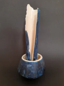 Certaines pièces, une fois cuites une première fois, sont revêtues de cire, faisant apparaître l’aspect veineux du bois, ou de toute autre matière issue de notre imaginaire.