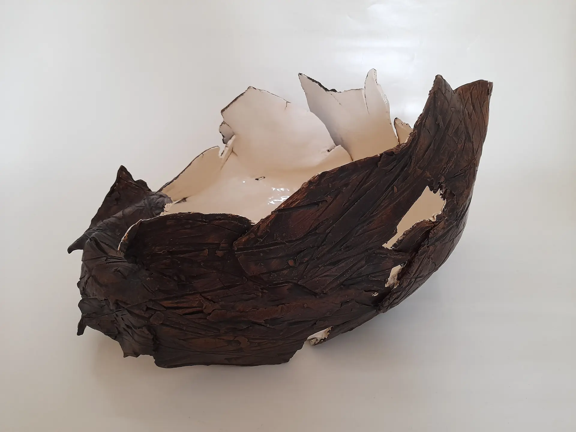Certaines pièces, une fois cuites une première fois, sont revêtues de cire, faisant apparaître l’aspect veineux du bois, ou de toute autre matière issue de notre imaginaire.